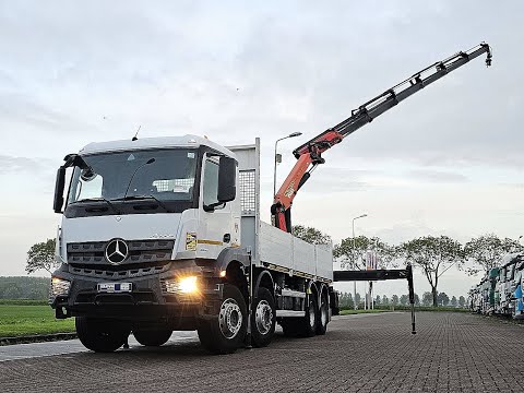 Number of axles: 4, Configuration: 8x4, Own weight: 18355 kg, Gross vehicle weight: 32000 kg, Total fuel capacity: 300 litre, fifth-wheel: Fixed, Diff. locks: 2, Suspension type: spring suspension, Cabin type: Short cabin, Cruise control, Tacho, Digital tachograph, Airconditioning, Electric windows, Electric mirrors, Radio/cassette, Color: white, Heated mirrors, Reversing camera, Lighting type: Halogen lamps, Bluetooth, Flashing lights, Engine capacity: 290 Kw (389 Hp), Fuel type: diesel, Euro: 6, Gearbox kind: Telligent, Gearbox make: Mercedes Benz, Number of Gears: 12, Power steering, ABS, ASR, PTO, PTO type: 1, Starter battery, system type: ,, Pump, Central locking, Seats configuration: 1+1, Seat cover: cloth, Chair adjustment: Manually, Crane, Crane make: Palfinger PK 27001 EH, Year crane: 2018, Capacity crane: 27, Maximum load: 1060 kg bij 17 m, Number of supports: 4, CE-approved, Control position: side control right, Remote control, Crane position: Rear position, Hydraulic extendable: 6 times, Extra hydr. conn.: 2, Rotator, Hook