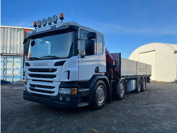 Camião de caixa aberta/ Plataforma, Camião grua Scania P450 8x2 Flatbed + Crane HMF 2620-K6